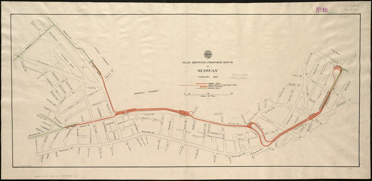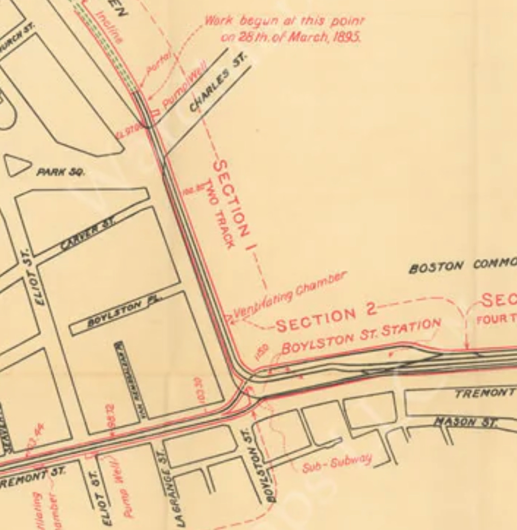 The plan involved building a tunnel from North Station to the Boston Public Garden with two portals (where the streetcars emerge from underground) at the southwest end, one at the public garden and another along Tremont Street a few blocks south of the Boylston Street Station.