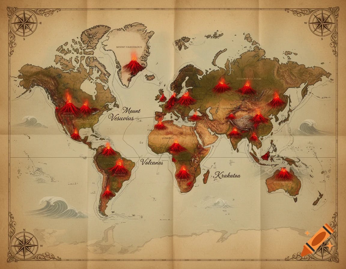 For a finale, please enjoy Craiyon’s map of world volcanoes.