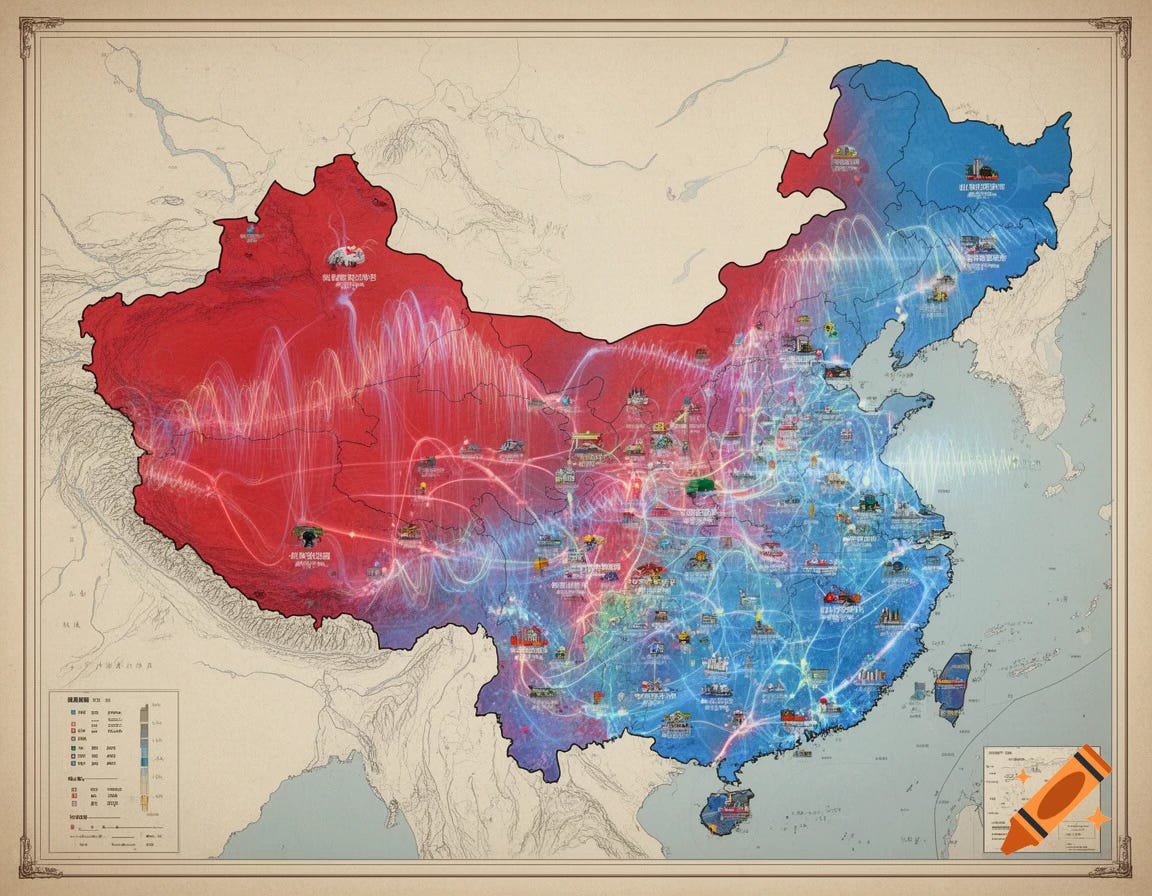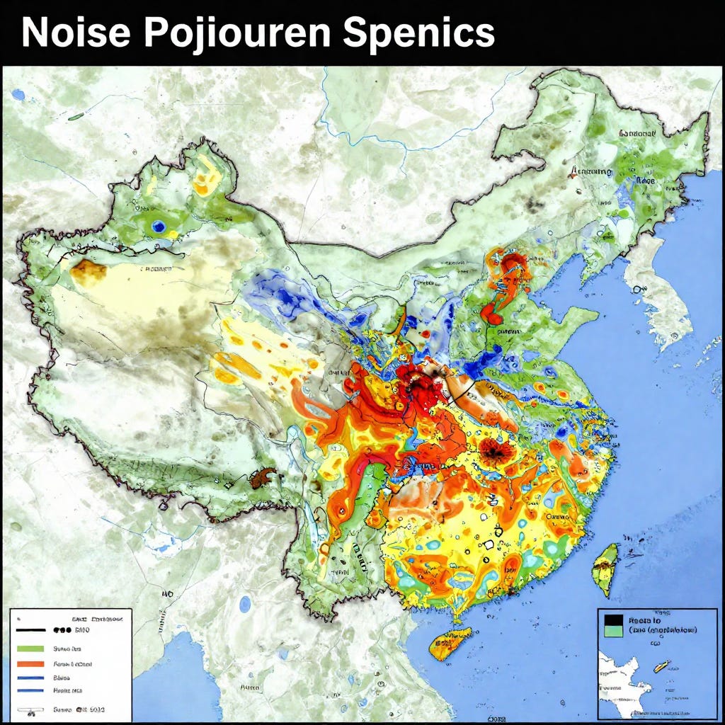 I decided to ask Craiyon specifically for a noise pollution map of China for contrast. The resulting map is quite beautiful, if not exactly helpful. Note that both of these maps include Taiwan which may raise some hackles.