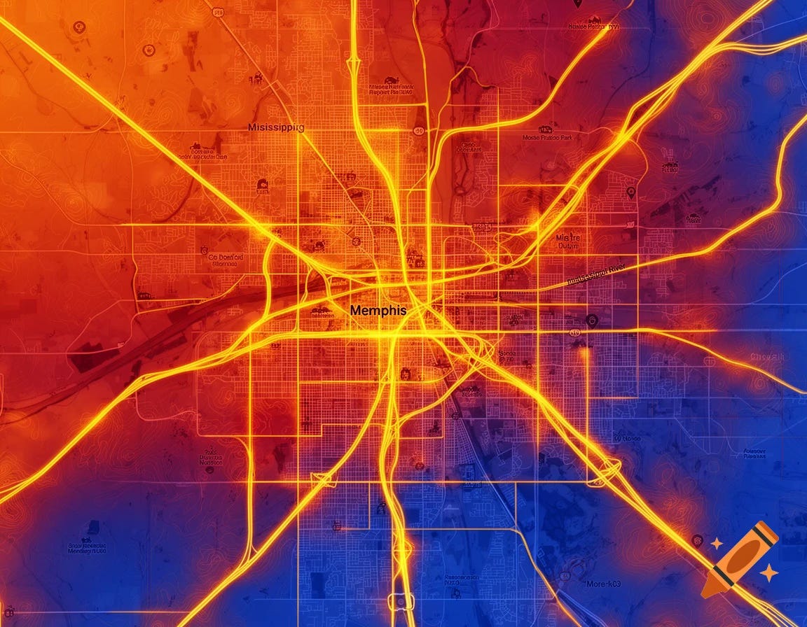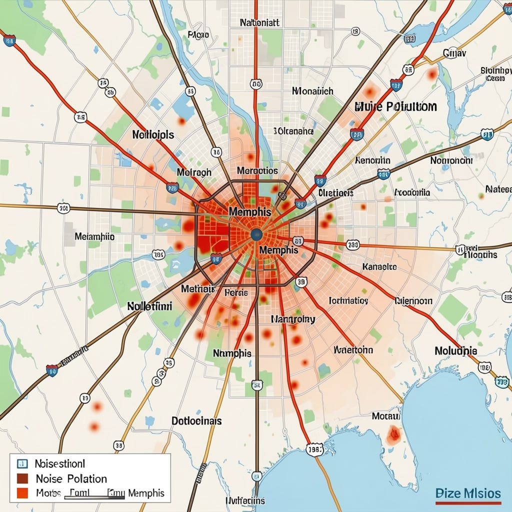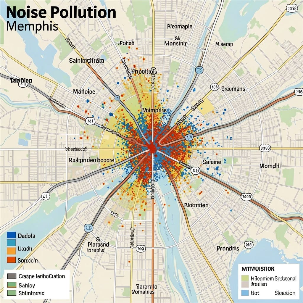 Here’s where it got really interesting. I asked Freepik to give me some noise pollution maps of Memphis to compare. In addition to two more maps of China, it gave me these two maps, both completely wrong but with a very similar geography.