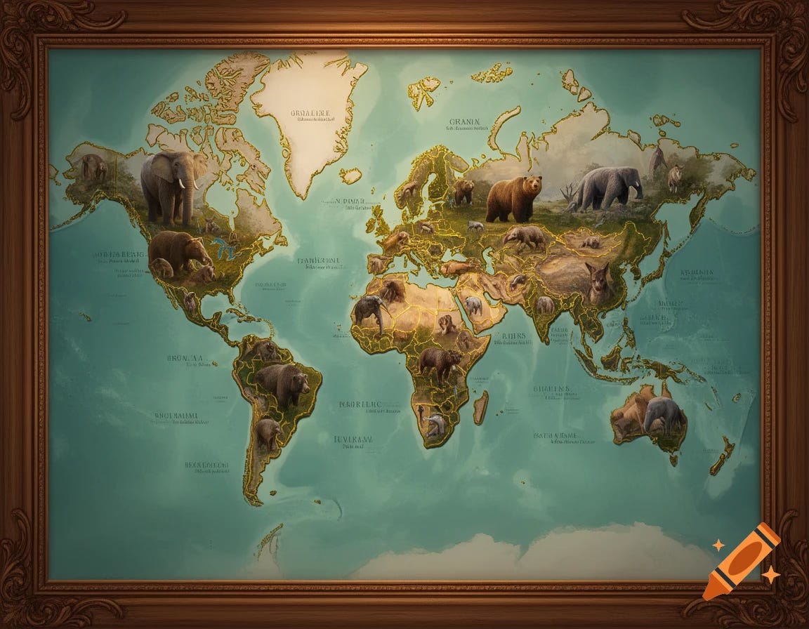 The Craiyon result was full of elephants. The Canadian breed, Australian and Siberian. The Chinese kangaroo (?) and the western US hippo (?) are also nice touches as is the fancy frame.