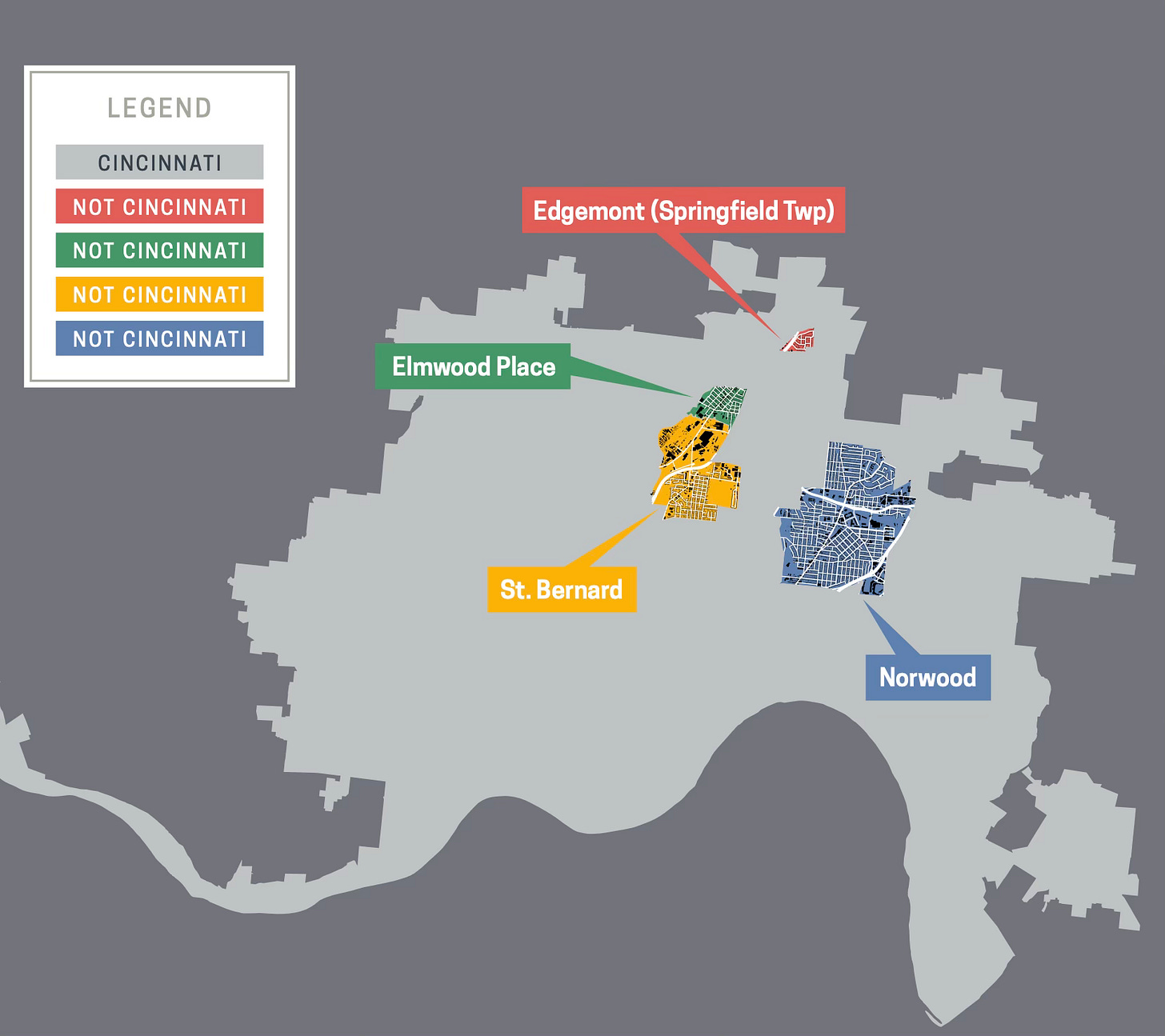 This map shows the city’s municipal islands with a nice legend. Columbus has even more of these.