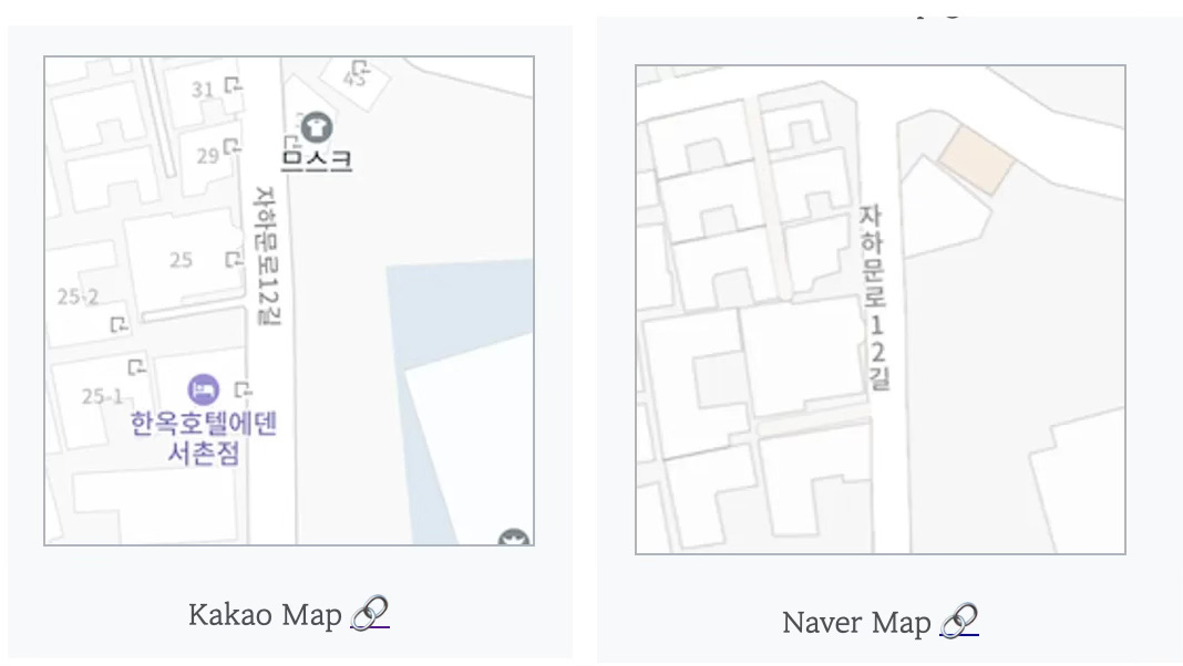 Overthinking about vertical writing of Hangul labels on maps - Here is a wonky problem I have never considered in my cartographic career. Hangul is the Korean alphabet. In a system that can be written vertically or horizontally, how do you orient your text on the vertical (north-south) roads? Author Hanbyul Jo surveyed her Korean friends for a preference. When no clear preference emerged, she turned to Korea’s main map services, who approach the problem differently.