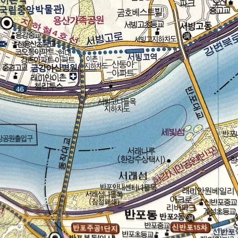 The map above (Seoul City Map -Seongji Publishing, 2024) appears to be in the latter category. Mainly I’m showing it because it’s a nice looking map. While the author remained on the fence she considers maps with the vertical text “a precious example of two writing styles naturally mixed together”.