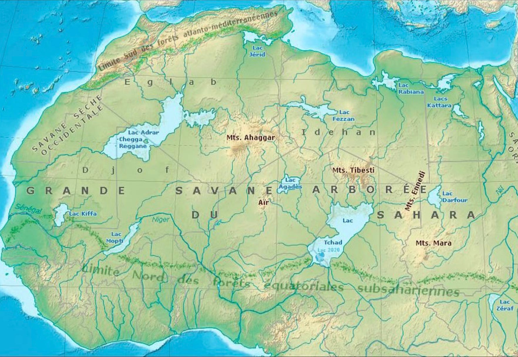 From that well known map site, Instagram comes this map showing northern Africa when it was a much more humid place, full of rivers and lakes. Aside from a few oasis towns, Lake Chad is about the only surviving water body and it is drying up.