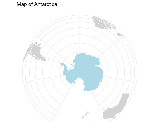 I had been working on a ggplot (an R software package, Wyoming on my Day 9 map) tutorial and knowing Antarctica Day was coming up decided to try it. I had also recently been to a talk about using Chat GPT for making maps so when I wasn’t satisfied with my result asked it to write me some ggplot code.