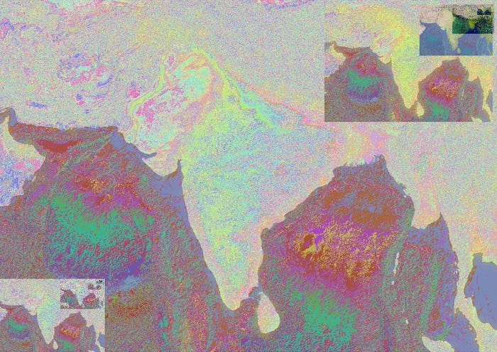 Here is another lost learning opportunity. I work infrequently with raster data and could have spent some time learning some new tricks. Time intrudes though so here is an image from the Natural Earth dataset with tweaks to the colors, transparency and blend modes. I like what happens in the mountains of Pakistan.