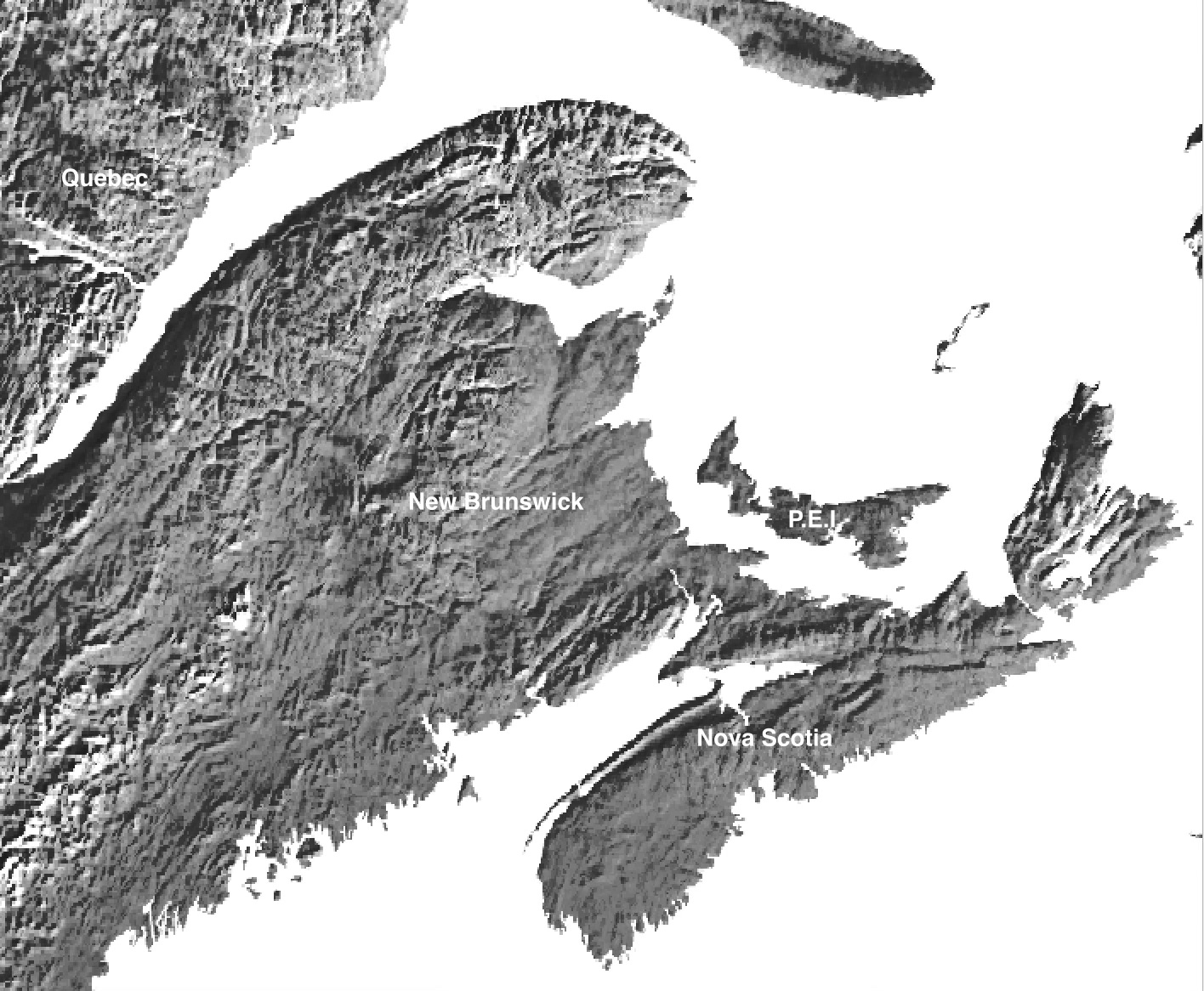 I had no thoughts ahead of time on this one. I wanted to do something with raster data and the easy, quick thing (this often requires taking the easy and quick route) was to grab the Natural Earth dataset that I already have (used for Day 21) and play with the lighting and contrast to create this nice looking map of the Canadian Maritime provinces (excluding Newfoundland).