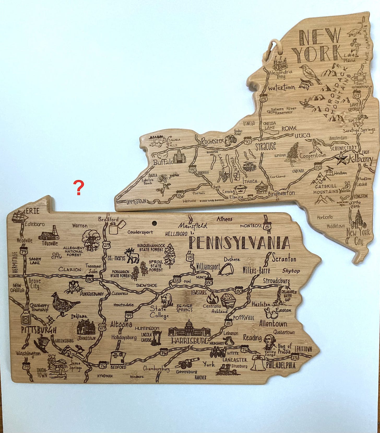 Her brother just gave me the New York version and hey, they don’t fit together. I guess I shouldn’t expect them to be scaled - the Delaware version would only fit a clove of garlic.