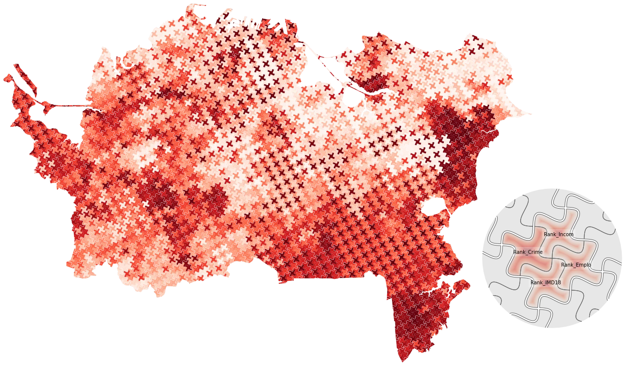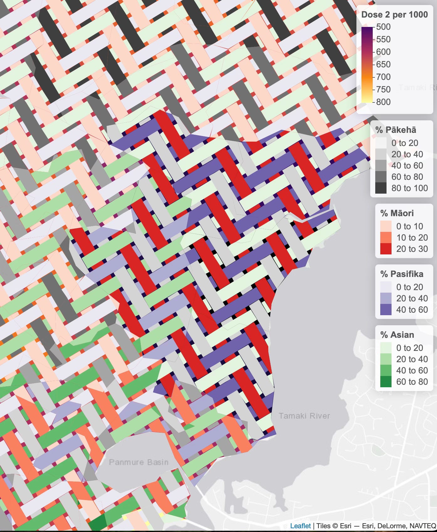 The author of this page (David O’Sullivan) gives some other cool looking examples in a slide presentation. Some are not well explained but they’re fun to look at. This one (not exactly a weave?) is about crime in Auckland.